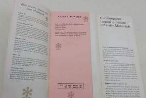 2 opuscoli, br. ed. a punta di spillo, uno in italiano e uno inglese, le migliori ricette tratte dagli archivi segreti dell'Air.India- Air India, indian recipie; volumetti in buono stao, ordinari segni d'uso e del tempo. Non scorporabili