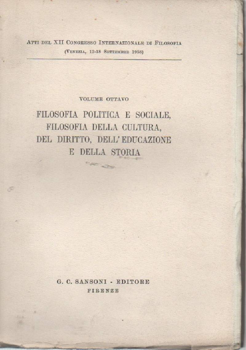 In 8, br. ed. pp. 298; Atti del XII Congresso Internazionale di Filosofia ( Venezia, 12-18 settembre 1958) vol. ottavo;