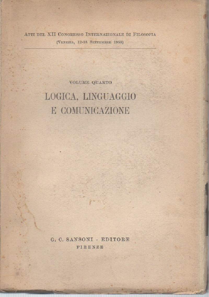 In 8, br. ed. pp. 421, vol. quarto -Atti del XII Congresso Internazionale di Filosofia (Venezia, 12-18 settembre 1958)